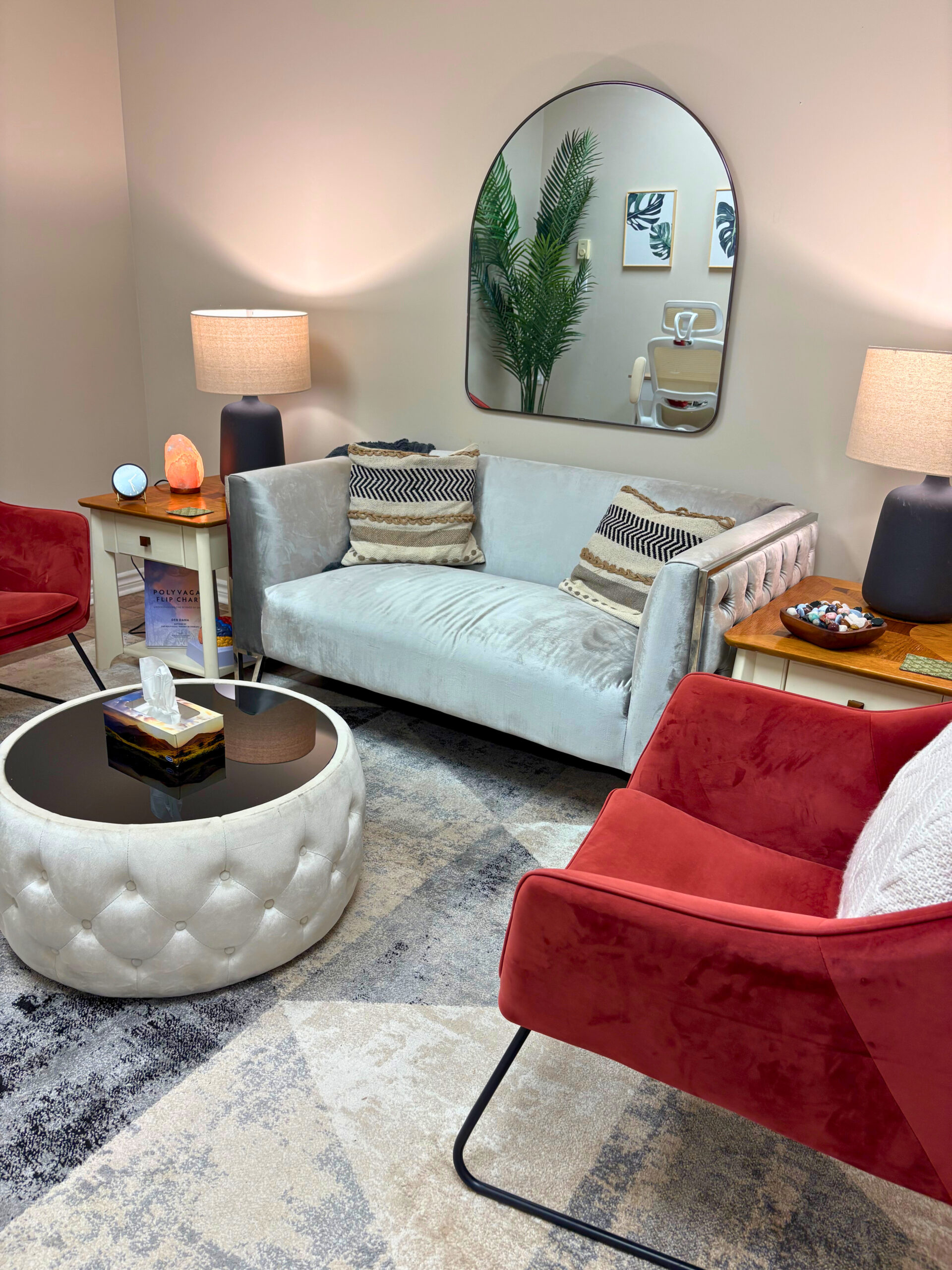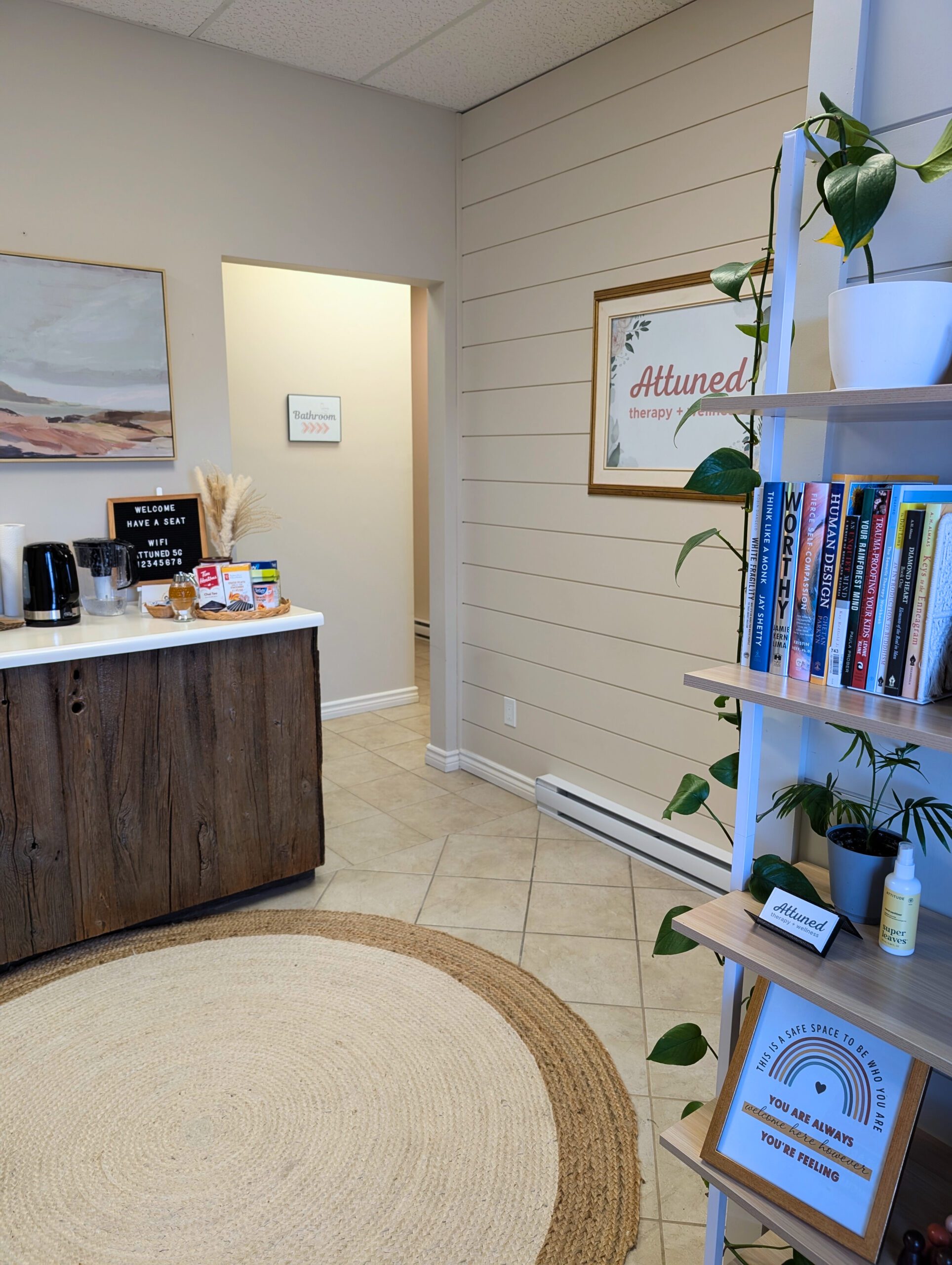 Every element of the clinic was chosen with intention: soft lighting, natural textures, comfortable seating, and a layout that encourages ease in your body and openness in your mind. Clients often tell us the space feels peaceful and safe, making it easier to settle into deeper conversations and therapeutic work.