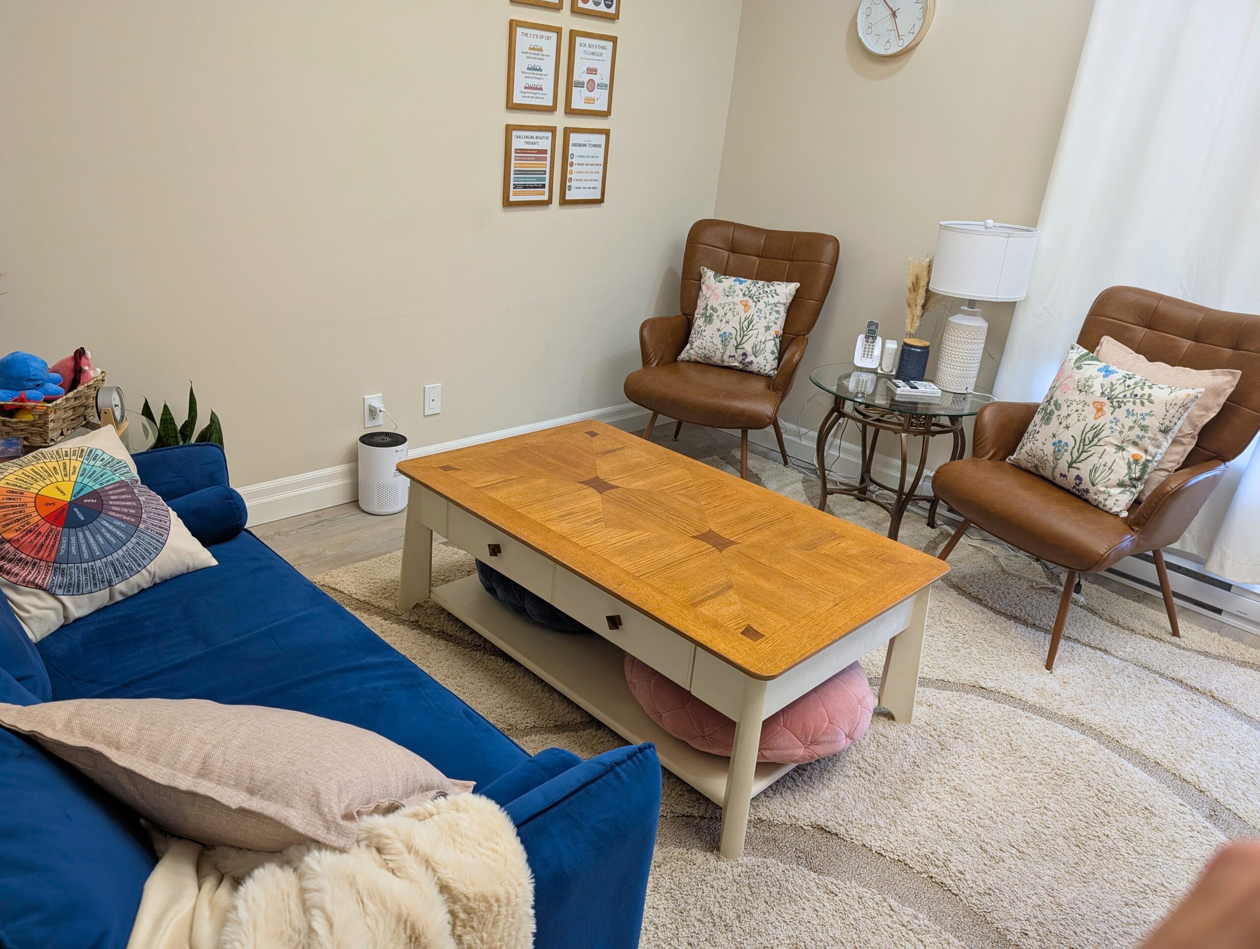 Our clinic space was intentionally designed to feel calm, grounding, and supportive — a place where you can exhale, feel safe, and begin the work of healing. Whether you’re navigating trauma, relationship stress, parenting challenges, or emotional overwhelm, our in-person therapy environment offers a relational, embodied alternative to virtual care.